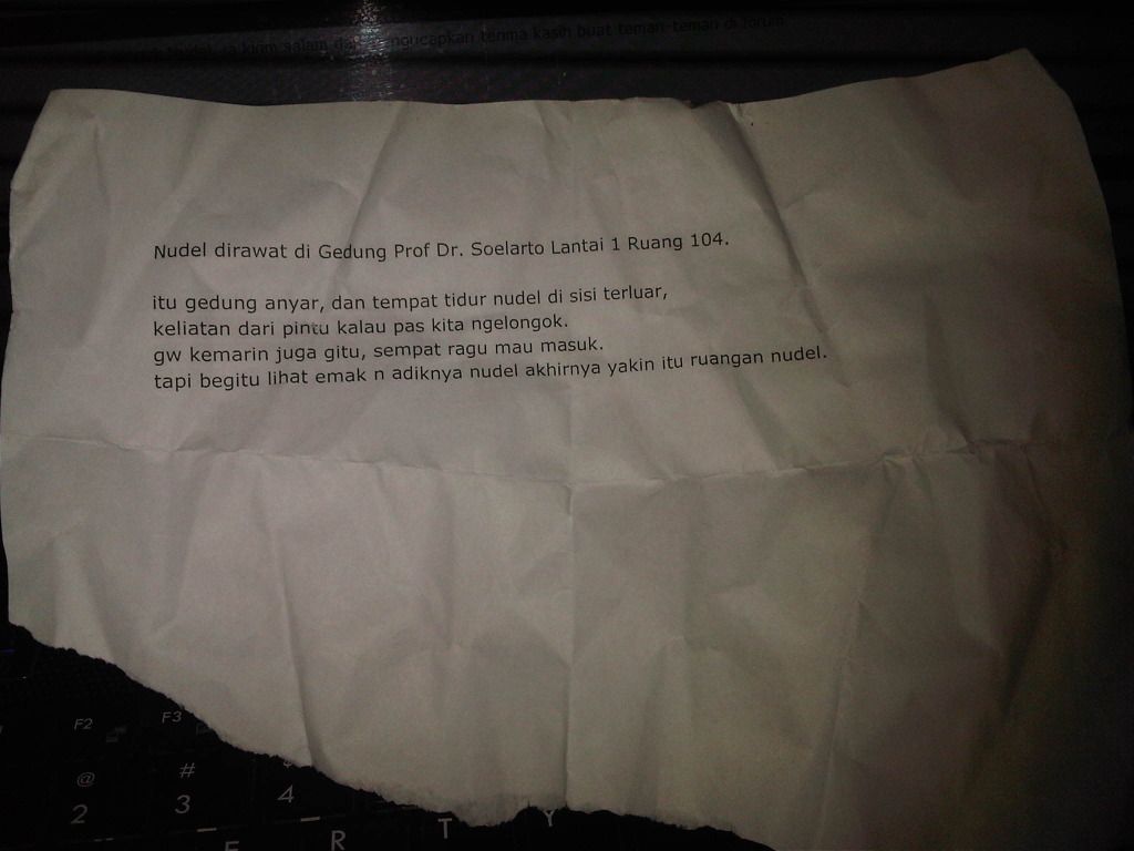 Moga2 cepat sempuh ya bro Nudel, dari sini gw turut mendoakan. :)