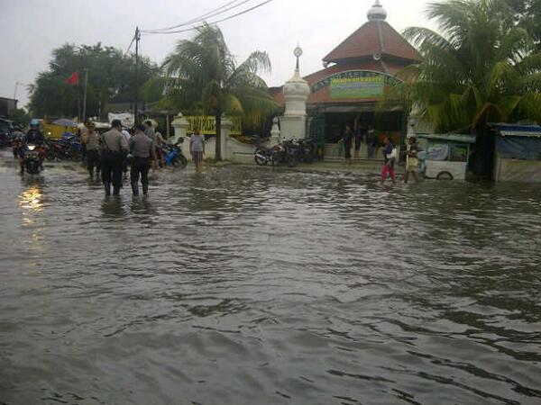 letak sekolahnya sendiri agak ditinggiin sih, tapi depan gerbang pasti tergenang