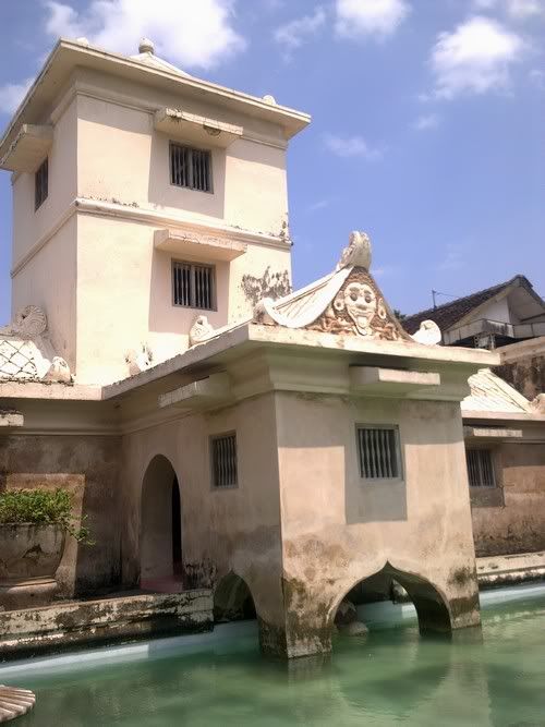 "Dari atas Gapura Panggung ini Sultan biasa menyaksikan tari-tarian di bawah sana. Bangunan-bangunan di sampingnya merupakan tempat para penabuh dan di tengah-tengah biasa didirikan panggung tempat para penari menunjukkan kepiawaian dan keluwesan mereka," terang seorang pemandu ketika memasuki Taman Sari. Dari Gapura Panggung, pemandu membawa masuk ke area yang dulunya hanya diperbolehkan untuk Sultan dan keluarganya, kolam pemandian Taman Sari. Gemericik air langsung menyapa. Airnya yang jernih berpadu apik dengan tembok-tembok krem gagah yang mengitarinya. Kolam pemandian di area ini dibagi menjadi tiga yaitu Umbul Kawitan (kolam untuk putra-putri Raja), Umbul Pamuncar (kolam untuk para selir), dan Umbul Panguras (kolam untuk Raja).