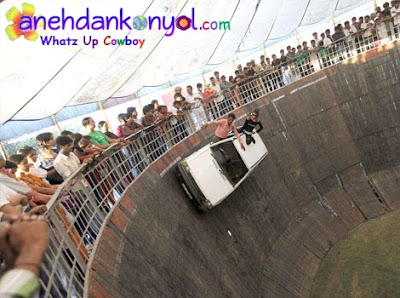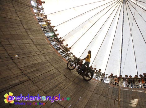 mungkin atraksi yang satu ini sudah tidak asing lagi didengar kalian, karena di Indonesia sendiripun atraksi ini sudah banyak yang mengenalnya. Atraksi ini biasa disebut orang atraksi Roda- Roda Gila atau Tong Stand dan biasa diplesetkan menjadi Tong Setan. Atraksi Ekstrim yang sangat mendebarkan ini dilakukan tanpa menggunakan alat pengaman sama sekali.
